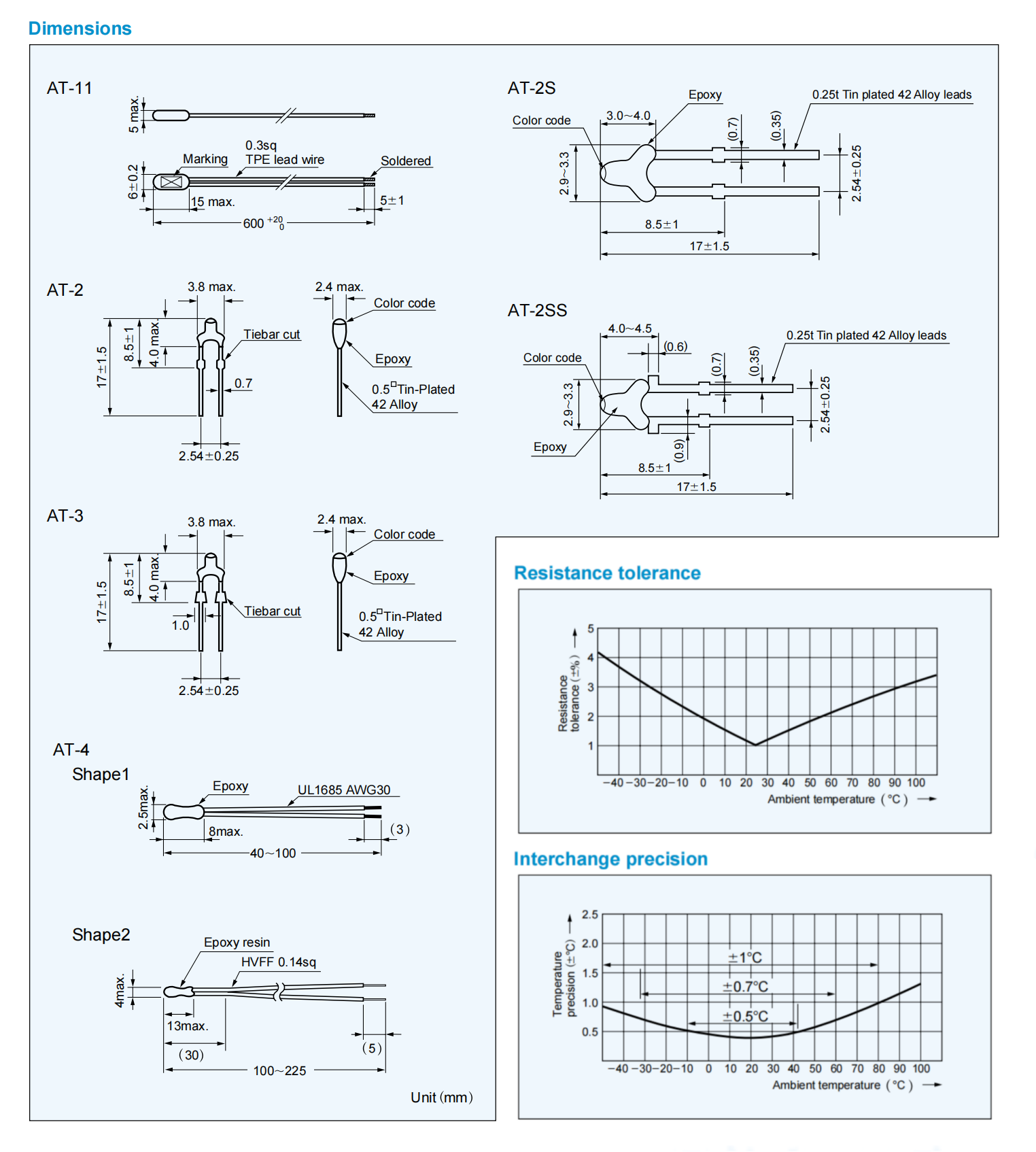 203AT-2 | 20.0kΩ±1% | 4013K±1% | 2 | 15 | 10 | -50~110 | None |