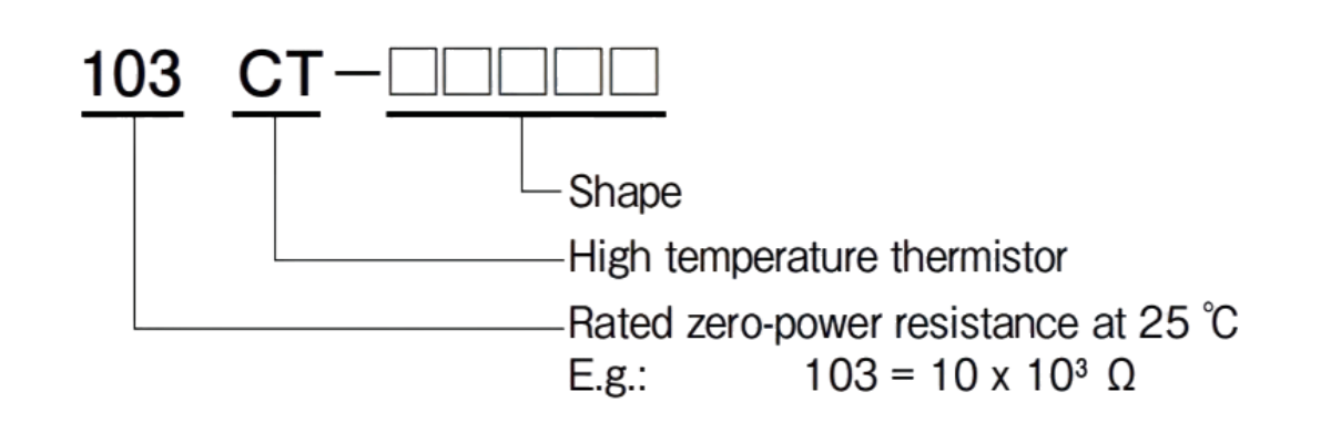 ※1:Rated zero-power resistance at 25℃ ※2:B-value determined by rated zero-power resistance at 25℃ and 85℃ ※3:Time required to reach 63.2% of temperature difference. Measured in still air. |