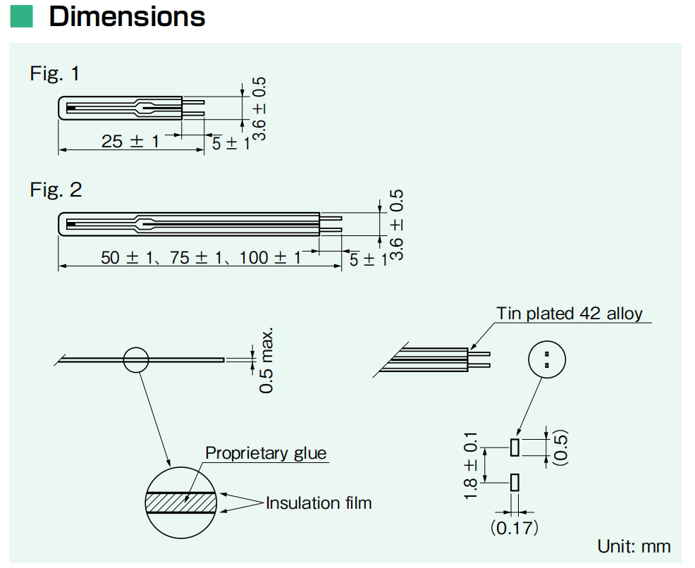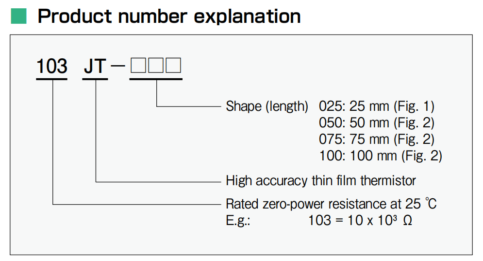 103JT-025 | 10.0kΩ | ±1% | 3435K±1% | approx. 0.7 | approx. 5 | 3.5 | −50〜+125 |